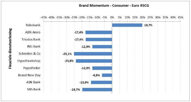 Zo is er van de 10 gemeten bankmerken slechts een merk dat een positief momentum weet te bereiken. Het mag geen verrassing heten, dat dit de coöperatieve Rabobank is. De coöperatie blijkt volgens het onderzoek ideaal aan te sluiten op de huidige tijdsgeest, waarin we de macht liever niet meer leggen in de handen van de aasgieren op de aandelenmarkt.